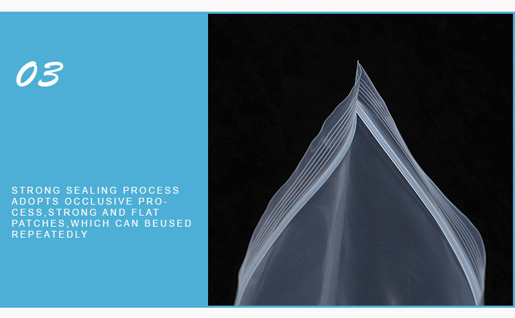பயன்பாடு: சேமிப்பு, ஆடை, காலணிகள், நகைகள், மருத்துவம், வன்பொருள் பாகங்கள் போன்ற பல்வேறு துறைகளுக்கு வெவ்வேறு அளவுகளில் மறுசீரமைக்கக்கூடிய ஜிப்லாக் பைகள் பொருத்தமானவை.