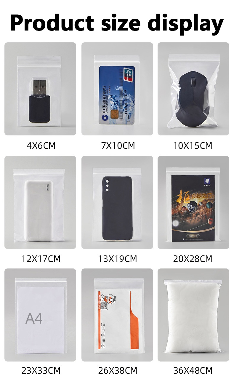 ஒரு தொழில்முறை பிளாஸ்டிக் பை உற்பத்தியாளர் என்ற முறையில், Zeal X, அளவு, தடிமன், அச்சிடுதல் மற்றும் லோகோ பிராண்டிங் உட்பட முழுமையாக தனிப்பயனாக்கக்கூடிய ஜிப்பர் பைகளை வழங்குகிறது. எங்களின் தனிப்பயன் ஜிப்பர் பைகள் பேக்கேஜிங் பாகங்கள், ஆடைகள், விளம்பரப் பொருட்கள், வன்பொருள் மற்றும் தினசரி பயன்பாட்டு தயாரிப்புகளுக்கு ஏற்றது. தொழிற்சாலை நேரடி வழங்கல் நிலையான தரம், போட்டி விலை நிர்ணயம் மற்றும் நெகிழ்வான உற்பத்தியை உறுதி செய்கிறது, பேக்கேஜிங் திறன் மற்றும் வாடிக்கையாளர் அனுபவத்தை மேம்படுத்தும் அதே வேளையில் தயாரிப்பு விளக்கத்தை மேம்படுத்த பிராண்டுகளுக்கு உதவுகிறது.