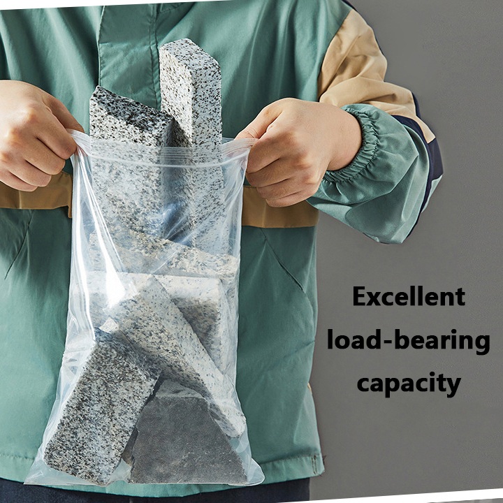 "தெளிவான, உயர்தர PE கட்டுமானம், வலுவான ஜிப் மூடல்கள் மற்றும் அளவு, தடிமன் மற்றும் அச்சிடுதல் உள்ளிட்ட தனிப்பயனாக்கக்கூடிய விருப்பங்களுடன், இந்த பைகள் நம்பகமான, மீண்டும் பயன்படுத்தக்கூடிய மற்றும் பார்வைக்கு ஈர்க்கக்கூடிய பேக்கேஜிங் தீர்வுகளைத் தேடும் வணிகங்களுக்கு ஏற்றதாக இருக்கும்."
